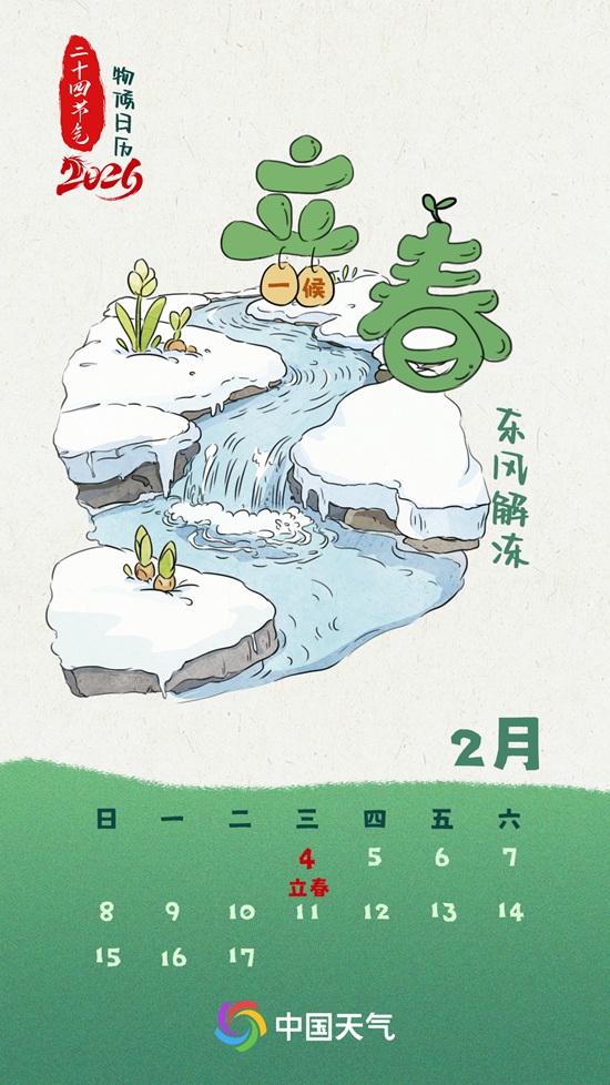 中国天气网讯 时光流转,岁月更迭,跟着物候图鉴,读懂二十四节气。今天(2月4日),我们迎来二十四节气之首——立春,新一轮的四时更替正式开启。此时和煦的东风吹拂大地,唤醒生机,中国天气别策划二十四节气系列物候地图,首期联合中国气象局二十四节气重点开放实验室推出立春全国东风解冻地图,看看大地解冻范围有多广。